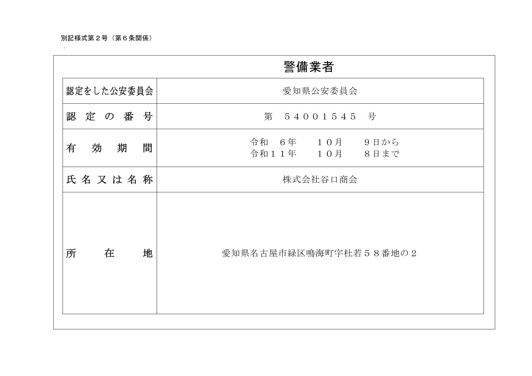 警備業法第6条(標識の掲示義務等)に基づき標識を掲示いたします。